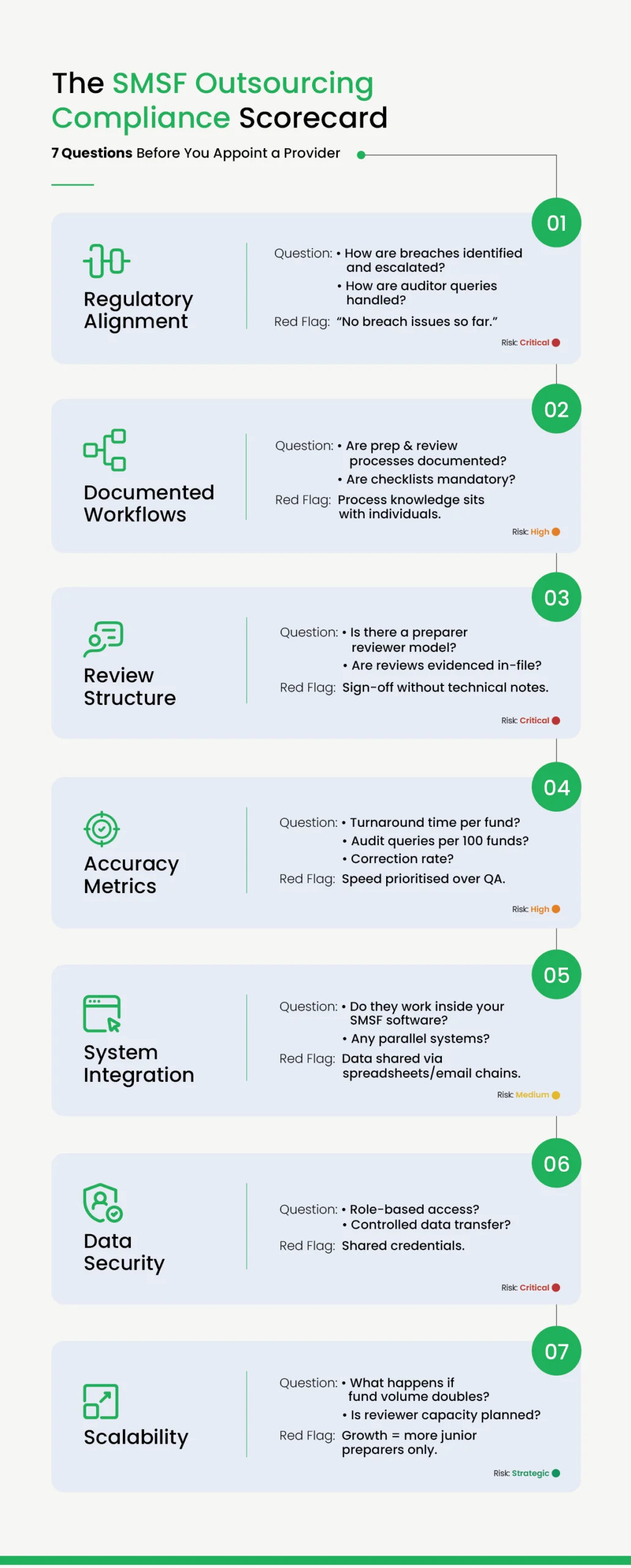 Here is a 7-point compliance scorecard you can use before appointing any SMSF outsourcing partner.